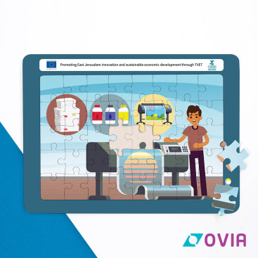 Full design and implementation of 10 different puzzle designs to promote technical and vocational professions for children in a fun and interactive way. Designed for the project “Promoting East Jerusalem innovation and sustainable economic development through TVET” for COOPI.